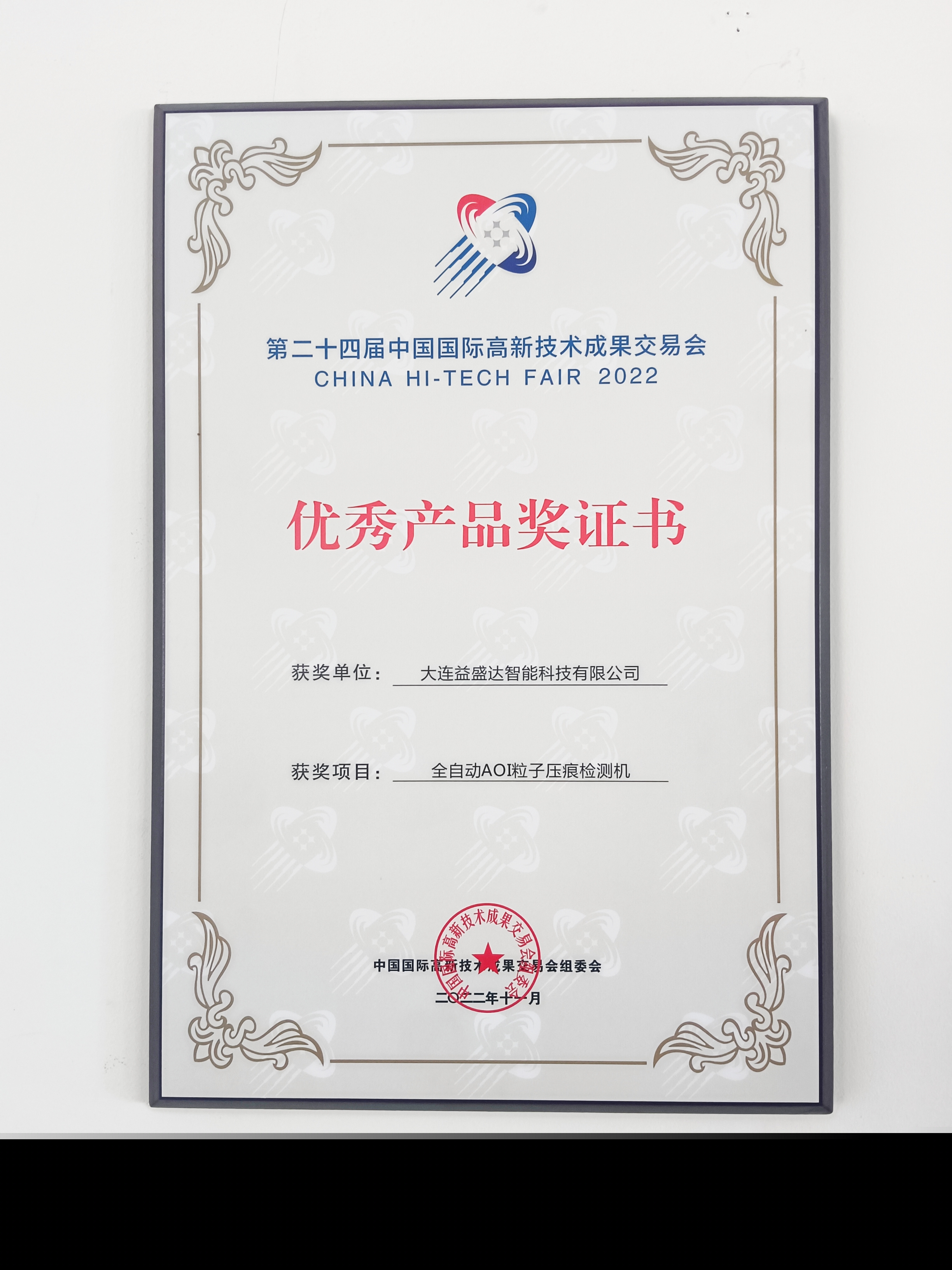 在剛剛落下帷幕的“第二十四屆中國國際高新技術(shù)成果交易會”(以下簡稱國際高交會),大連益盛達(dá)智能科技有限公司(以下簡稱“益盛達(dá)公司”)的全自動AOI粒子壓痕檢測機(jī),憑借先進(jìn)的檢測功能,榮獲“優(yōu) 秀 產(chǎn) 品 獎”。